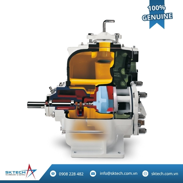 - Hệ thống điều chỉnh khe hở không cần shim cho phép căn chỉnh nhanh chóng bằng tay, không cần tháo trục, dây đai hay bộ truyền động—giúp kéo dài tuổi thọ của cánh bơm và tấm mòn.